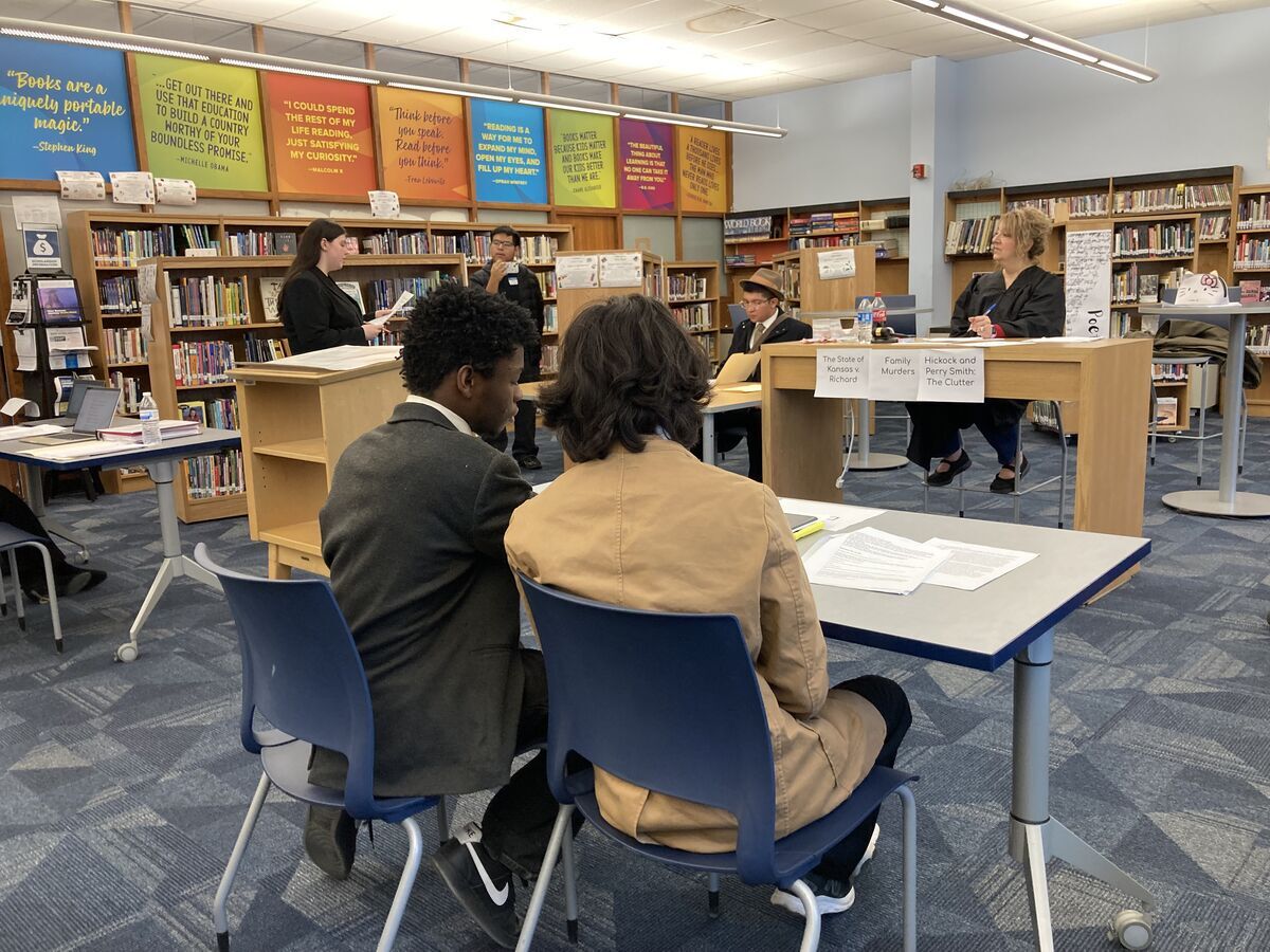 Both classes used their reading and discussing of the text to argue the trial of Richard Hickock and Perry Smith, regarding the 1959 murder of the Clutter family detailed in the book.